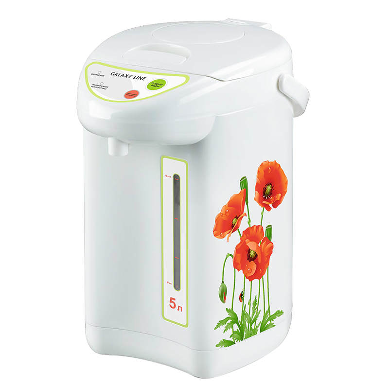 Galaxy LINE GL 0606 Термопот 900 Вт, объем 5литров, 3 способа подачи воды, функция повторного кипячения, колба из нержавеющей стали, металлический корпус, ручка для переноски, шкала уровня воды, питание 220-240В ,50Гц