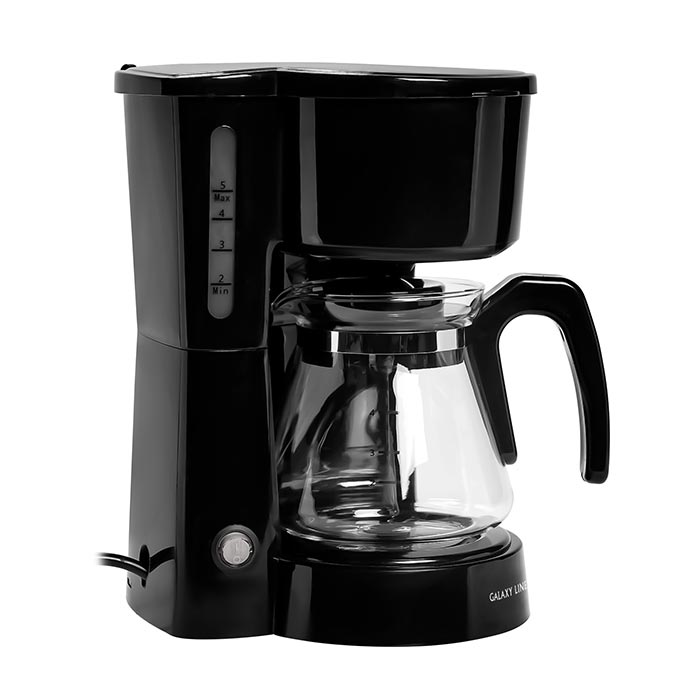 GALAXY LINE GL 0709 ЧЕРНАЯ Кофеварка электрическая 800 Вт, объем 0,75 л (4-6 чашек), многоразовый съемный фильтр, автоотключение при отсутствии воды, шкала максимального уровня воды, выключатель с индикатором работы, функция подогрева и поддержания температуры готового кофе, система “стоп-капля”, ножки, препятствующие скольжению, номинальное напряжение 220-240 В, номинальная частота 50 Гц